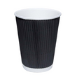 A box of 12-oz Black Ripple Wall Paper Coffee Cups (500) offering enhanced insulation. (354ml)