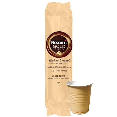 Each sleeve contains 25 cups, making it ideal for office or home use. Enjoy the convenience of Nescafé Gold Blend Decaf in a cup with whitener, whether using a vending machine or a kettle with hot water.