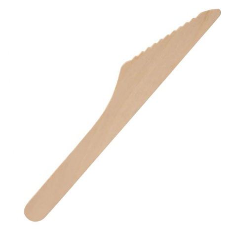 These biodegradable professional catering wooden knives from Hot n Fresh offer an eco-friendly plastic alternative for food service. Made from high-quality birchwood, each 165mm (6.5 inches) knife has a serrated cutting edge and is 100% compostable, recyclable, and food-grade safe.