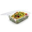 These large, recyclable 750ml rectangular containers, with dimensions measuring 18 cm x 12 cm x 6 cm, are perfect for storing takeaway salads, cakes, desserts, and chilled food. Their hinged lids provide a secure, leakproof seal, making them ideal for all your catering needs.