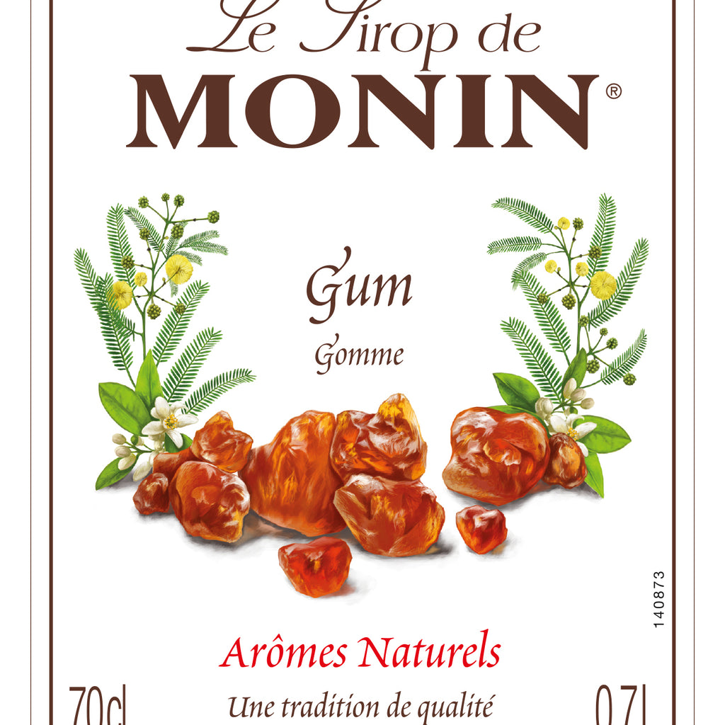 The 700ml Monin Gum (Gomme) Flavouring Syrup from France comes in a glass bottle.